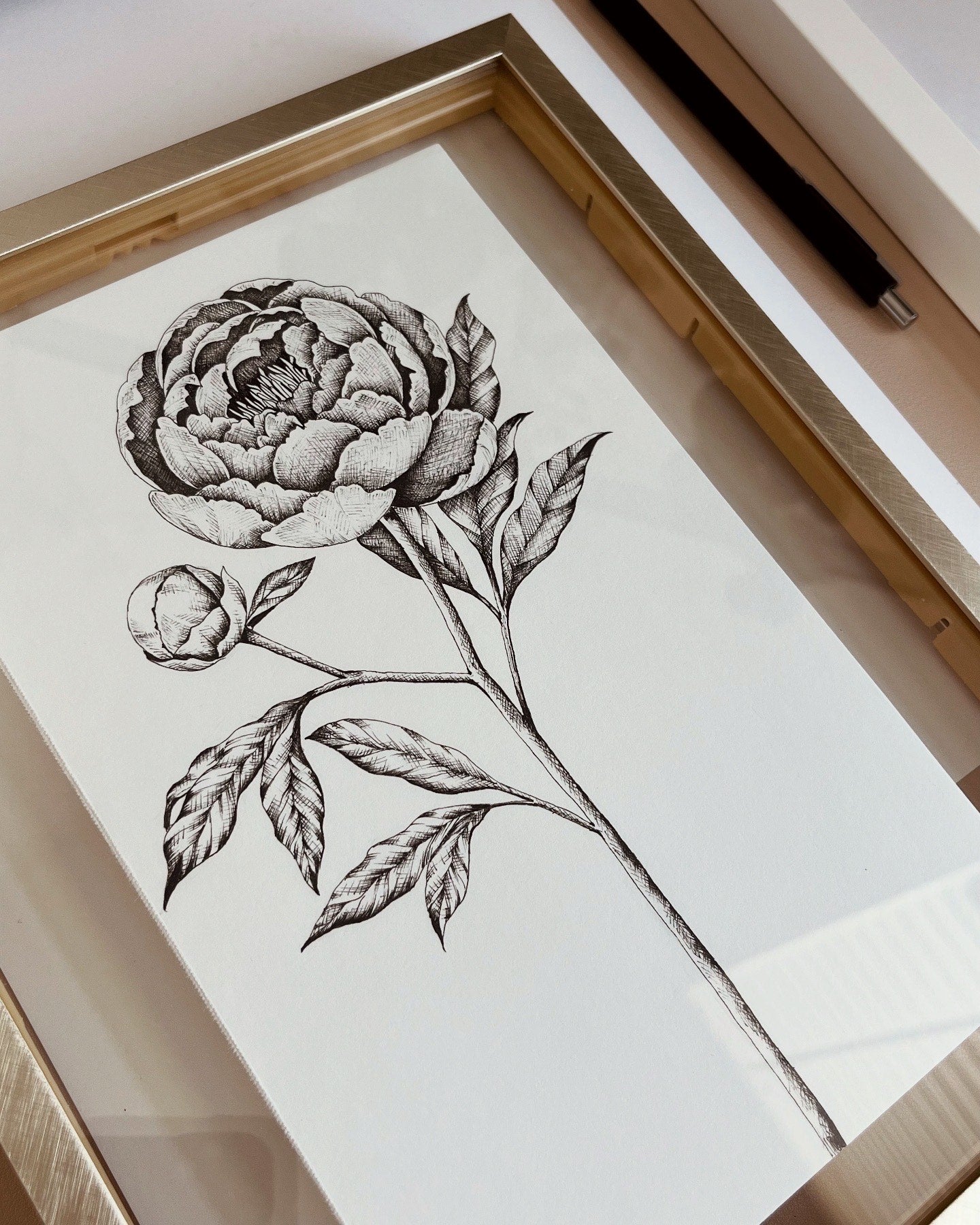 A gentle blend of watercolor and ink, beautifully framed